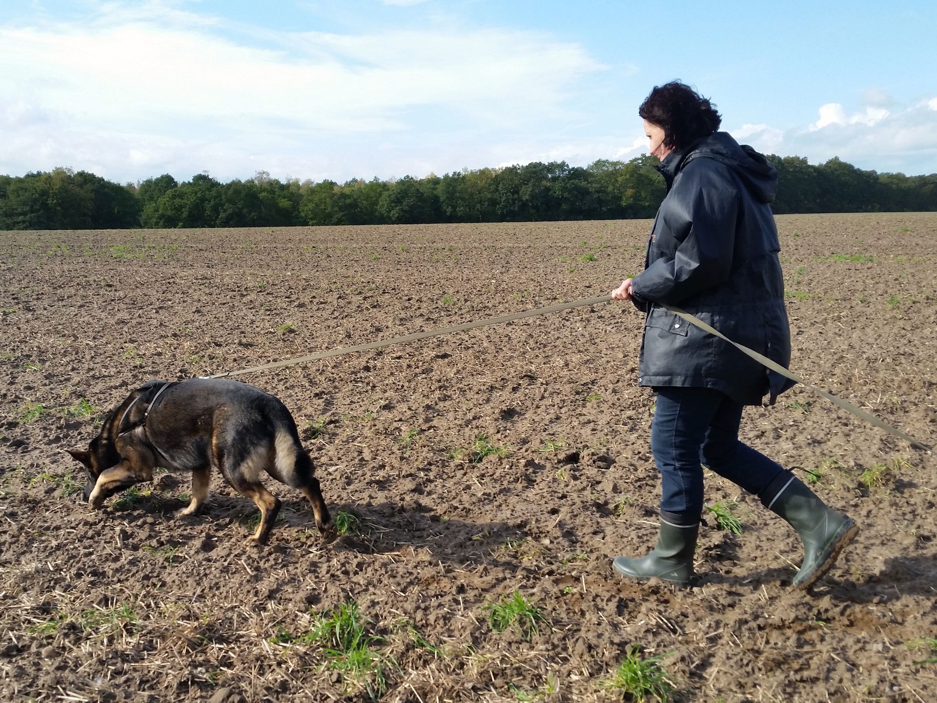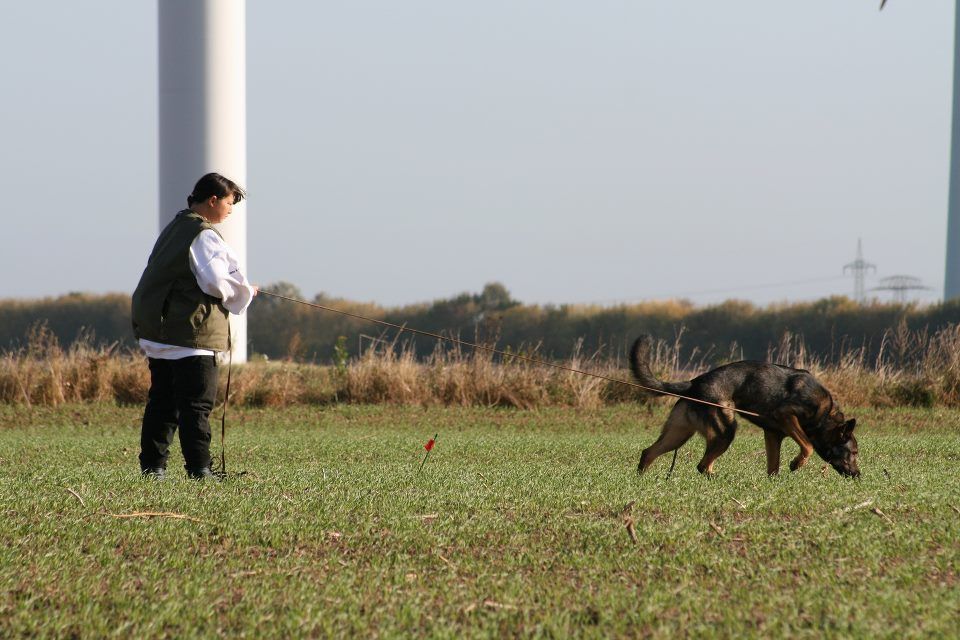 Der Geruchssinn eines Hundes ist etwa 10.000 -100.000 mal stärker als der des Menschen. Also, warum nicht ausbilden!? Die Größe oder das Alter von Hund und Hundeführer sind hierbei egal. Der Hund sucht bei der Fährtenarbeit IGP Teil A eine Bodenverletzung, die zuvor der Hundeführer bzw. Fährtenleger durch das Gehen über einen geeigneten Boden, verursacht hat. Es werden Gegenstände ausgelegt, die das Suchergebnis bestätigen sollen. Danach wird an einer dem Ausbildungsstand des Hundes angepassten Leine (Prüfungslänge 5m - 10m) abgesucht, bis alle Gegenstände verwiesen wurden. Der Hund sollte diese in Sitz, Platz oder Steh anzeigen! Die Fährten hat zwischen 300 - 600 Schritte Länge und mindestens 2-3 Gegenstände. Fährtenarbeit ist Fleißarbeit! Das Legen von Fährten bedarf einziges an Zeit, jedoch wird diese aufgewogen durch eine sehr ruhige und ausgeglichene Arbeit mit dem Hund. Wer nicht wetterscheu ist und sich intensiv mit der Nasenarbeit eines Hundes auseinandersetzen möchte, für den ist der IGP Teil A ein guter Einstieg in das enorme Leistungsvermögen einer Hundenase.